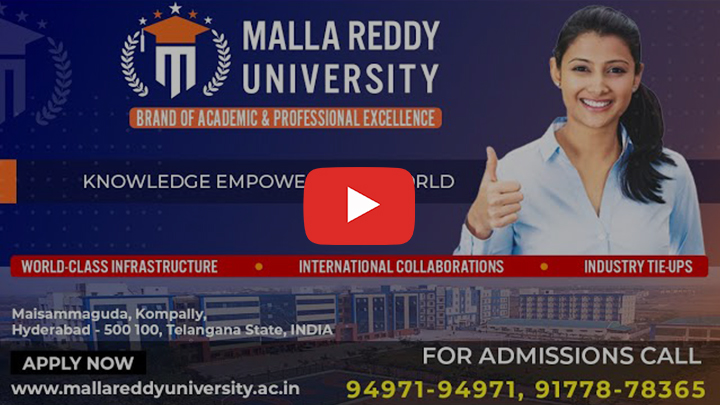Malla Reddy University, the only Private University under green field category, is transforming into a Center of Excellence through new initiatives by creating world class infrastructure, expanding international collaborations, developing innovative programs, establishing industrial tie-ups, recruiting well qualified and trained faculty, promoting the talent, nurturing the research and innovation